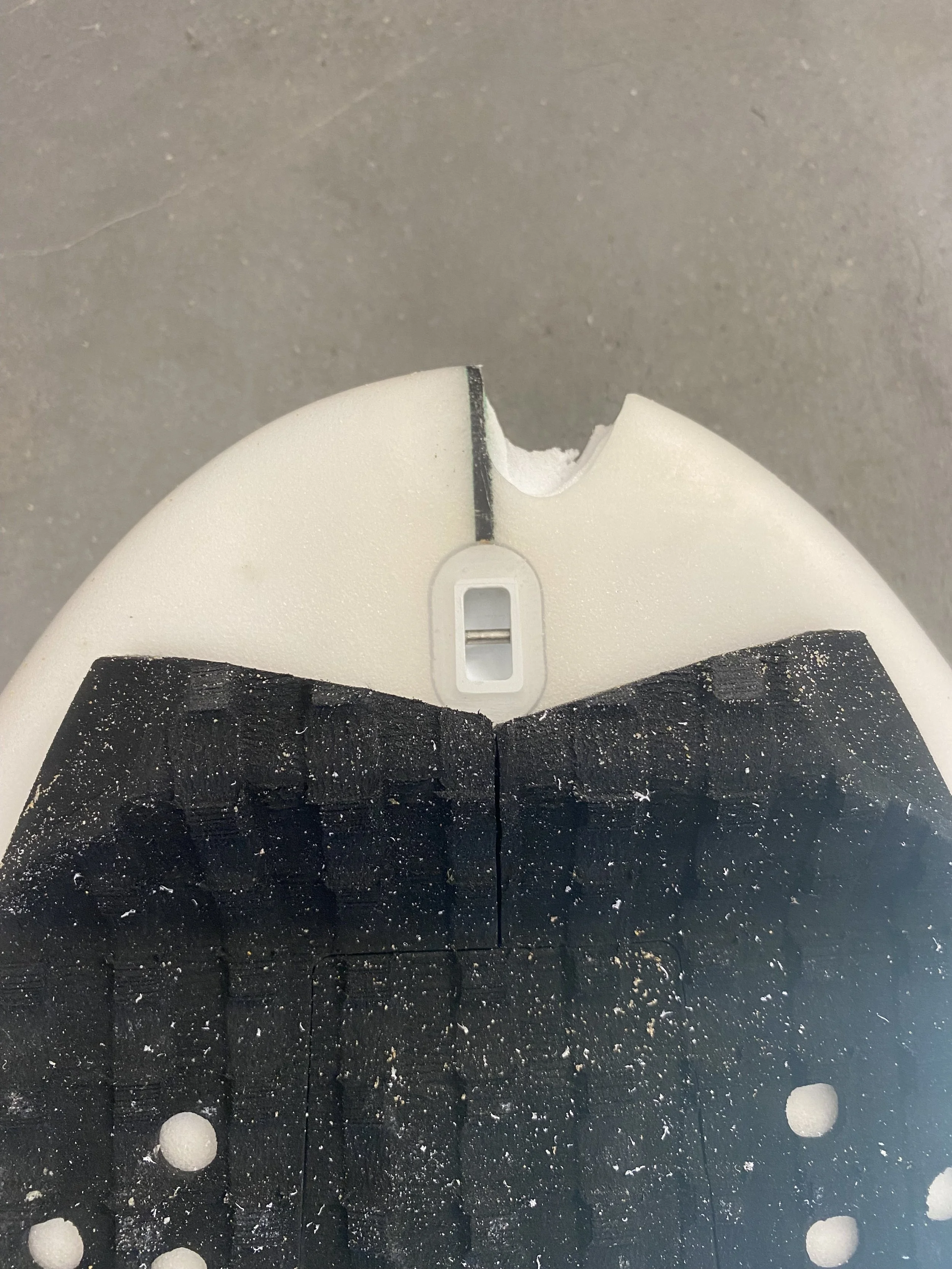 See our work Fin Box Nose repair tail repair bottom restoration of a F2 SPUTNIK 285 Patin a vela wear layer